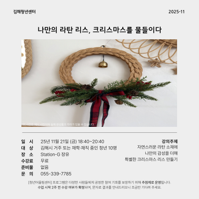 [장유] 청년문화학교 - 나만의 라탄 리스, 크리스마스…