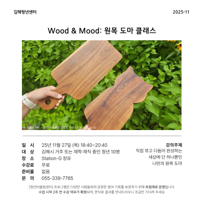 [장유] 청년문화학교 - Wood & Mood: 원목 …